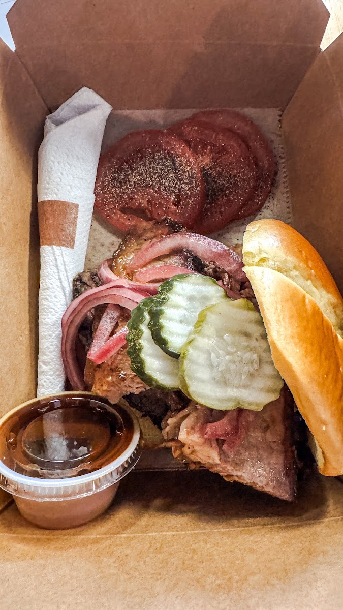 When I say I want a brisket sandwich, this is what I mean. THIS is my new standard. What did I do to deserve such a wonderful treat? As I work in the area, I’ve visited this coffee shop quite a few times in the past. Not only has their cold brew continued to challenge my idea of what coffee even is, but their Panama Black is the quintessential pique of cold brew black coffee for me. I recently learned that they started serving lunch and decided to make today the second day in a row I’d visit, because Fridays are their Sammie of the Week (day). Their special was the brisket sandwich, and at $13.95.. I hesitated. It’s not a lot for a brisket sandwich, but guys, this is a coffee shop, so my expectations were set as such. Anyway, thanks to Sean (awesome name, btw!), I decided to follow through on why I even came here for a second day in a row. And wow, am I blown away. The simple treatment of freshly cracked black pepper over the tomatoes, the crisp pickles that rivaled those I’ve had from artisnal delis, and the 5!!!! Slabs of brisket on my sandwich, made this an absolute no brainer. If you love brisket, you HAVE TO GET THIS SANDWICH (if they do it again). I mean, guys, they even paid attention to the way they sautéed the onions. I will say, I can see a world in which the BBQ sauce is hit or miss, as it is definitely a vinegar-forward BBQ sauce. I would taste test before applying. This isn’t just a spot for coffee that matters. It’s a place for experiences that will redefine what you think of a coffee shop. I cannot speak highly enough of this establishment, and it sure is nice I no longer have to go all the way to Marietta to find a wonderful roaster!